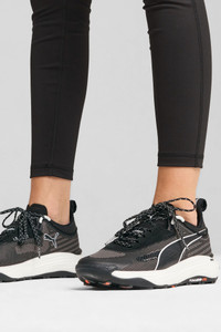 PRODUCT STORY Tackle any terrain in the sturdy confines of the Voyage NITRO™ 3. In this updated version of the model, we've tooled the trail shoe with a full NITROFOAM™ midsole for a lighter weight and more responsive ride when you're conquering distances. The PUMAGRIP ATR rubber outsole has been revamped with our PWRADAPT tech, allowing the lugs to move independently with the ground for supreme traction on multi-terrain. Our new, wider upper has been reinforced with PWRTAPE for support and protection, and the forefoot drain ports shed water like a champ. FEATURES & BENEFITS - The upper of the shoes is made with at least 20% recycled materials - NITROFOAM™: Advanced nitrogen-infused foam designed to provide superior responsiveness and cushioning in a lightweight package - PUMAGRIP ATR: Trail-ready performance rubber compound designed for traction on ice, mud, and unstable surfaces DETAILS - Style: 379618_02 - Color: PUMA Black-PUMA White - Regular fit - Engineered mesh upper - Stack Height: 35mm/27mm - Heel-to-toe drop: 8mm - Weight: 292g - Recommended for: neutral pronators - Lining: 100% Textile; Outsole: 100% Rubber; Upper: 54.25% Textile, 45.75% Synthetic; Sockliner: 100% Textile