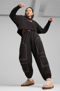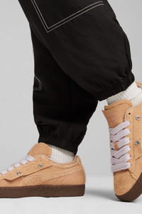 PRODUCT STORY PUMA x X-GIRL has arrived. The collab is bringing a modern, feminine edge to classic street and skate aesthetics and features bold and aggressive pieces with graffiti-inspired graphics and a DIY aesthetic. This version of the PUMA Suede goes all out with some studs on the side and a carabiner on the Formstrip. DETAILS - Style: 396251_02 - Color: Dusty Tan-Toasted Almond - Canvas upper with suede overlays - Tonal studs on the lateral side - Textile sockliner - Carabiner on Formstrip with X-GIRL logo - Rubber midsole - Rubber outsole - PUMA x X-GIRL co-branding MATERIAL INFORMATION - Sockliner: 100% Textile - Outsole: 100% Rubber - Upper: 52.15% Textile, 47.85% Leather - cow - Lining: 100% Textile