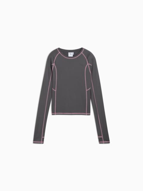 PRODUCT STORY Our YONA collection takes a refined, tailored approach to streetwear. While the designs are inspired by fashion, we always stay true to our sportswear roots. Premium materials and layered textures are combined with metallic finishes and all-over prints to create a fresh style uniform. FEATURES & BENEFITS - Made with at least 90% recycled materials. DETAILS - Style: 632322_44 - Color: Dusky Gray - Fit: Tight - Main material: Single jersey - Neck: Crew neck - Long sleeves with thumb holes at the cuffs - Length: Regular MATERIAL INFORMATION - Shell: 94% polyester, 6% elastane
