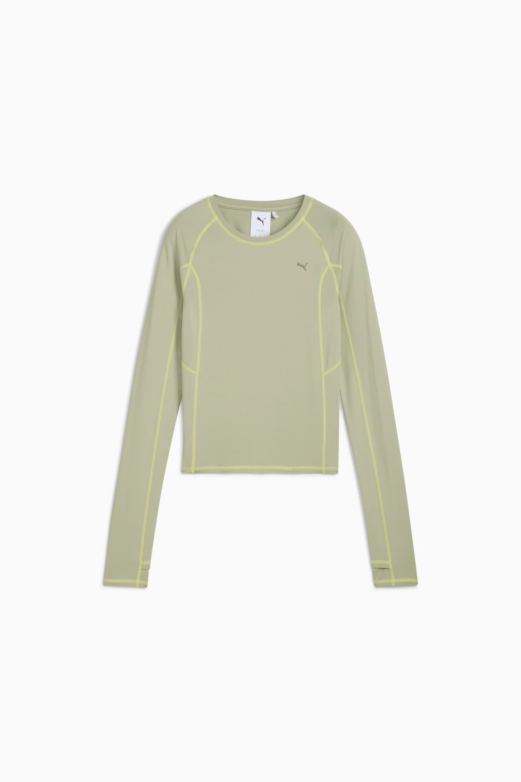 PRODUCT STORY Our YONA collection takes a refined, tailored approach to streetwear. While the designs are inspired by fashion, we always stay true to our sportswear roots. Premium materials and layered textures are combined with metallic finishes and all-over prints to create a fresh style uniform. FEATURES & BENEFITS - Made with at least 90% recycled materials. DETAILS - Style: 632322_82 - Color: Lux Army - Fit: Tight - Main material: Single jersey - Neck: Crew neck - Long sleeves with thumb holes at the cuffs - Length: Regular MATERIAL INFORMATION - Shell: 94% polyester, 6% elastane