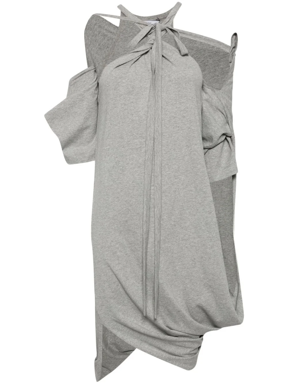 asymmetric draped dress Highlights - Cotton blend - Grey - Asymmetric design - Off-shoulder - Draped design - Halterneck tie fastening - Asymmetric hem Imported Composition Cotton 93%, Spandex/Elastane 7%