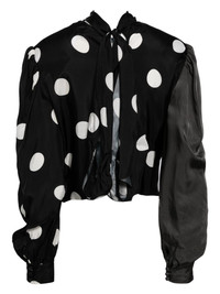asymmetric long sleeves blouse Highlights - Black/white/green - Rear tie fastening - Mock neck - Polka dot print - Asymmetric design - Asymmetric sleeves - Contrasting sleeves - Rear asymmetric hem - Buttoned cuffs - Long puff sleeves - Contrasting-fabric sleeves Imported Composition Rayon 100%
