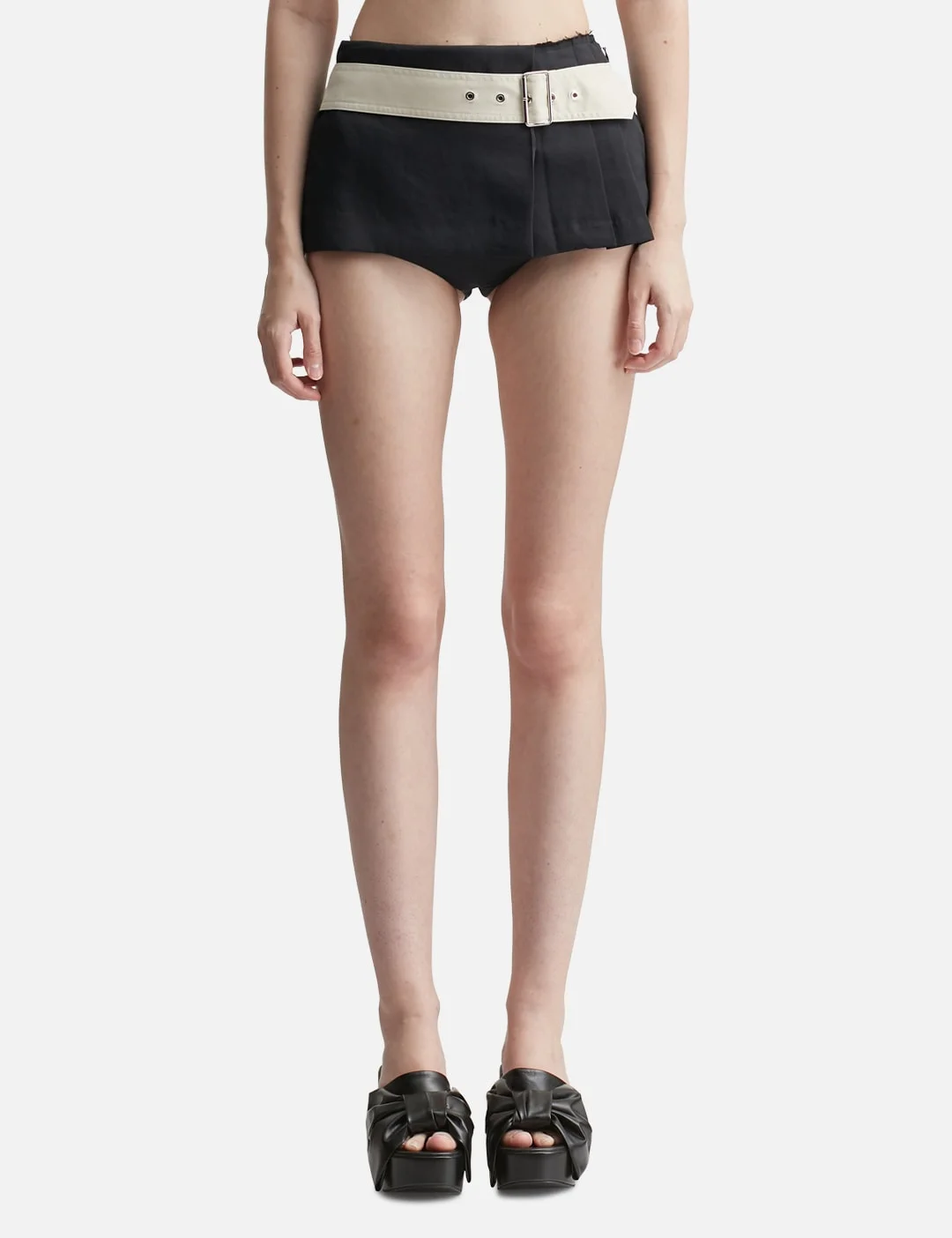 - pushBUTTON - Belted Pleated Skorts - Integrated belt - Pleated skirt layer - Tight shorts underlay - Color: Black - Material: 100% Cotton; 100% Polyester - See more Shorts and Clothing - Vendor Code: PB2610413W