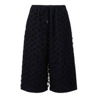 300048717BLK-XS / P5PB2530307W/00/BK - Elasticated waistband with drawstring closure - Textured floral mesh overlay construction - Layered dimensional applique details - Bermuda-length cut - Relaxed fit silhouette - Front slit detail pushBUTTON Black Floral Mesh Layered Bermuda Shorts deliver contemporary streetwear with textured layering and architectural design. Crafted from premium mesh overlay featuring dimensional floral applique details in deep black tones throughout the silhouette. The innovative layered construction and signature pushBUTTON aesthetic create a bold statement piece for modern wardrobes.