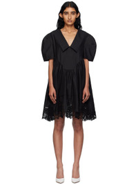 Black Lace Hem Puff Minidress