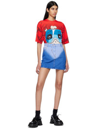 Non-stretch denim skirt. Gradient pattern throughout. · Belt loops · Five pocket styling · Zip-fly · Logo graphic patch at back waist · Logo graphic embroidered at back pockets · Contrast stitching Supplier color: Blue 100% cotton. Made in South Korea 231252F090023