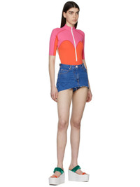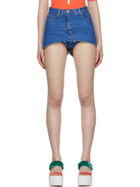 Non-stretch denim shorts. Skirt-style overlay throughout. · Belt loops and logo patch at waistband · Zip-fly · Five-pocket styling Supplier color: Blue 100% cotton. Made in South Korea 221252F088013