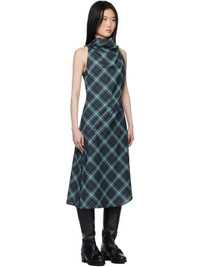 Cotton poplin midi dress. Check pattern throughout. · Cowl neck · Asymmetric button fastening at front for alternate styling · Central vent at back hem Supplier color: Navy 100% cotton. Made in South Korea 251252F054011