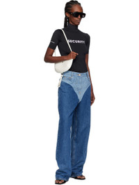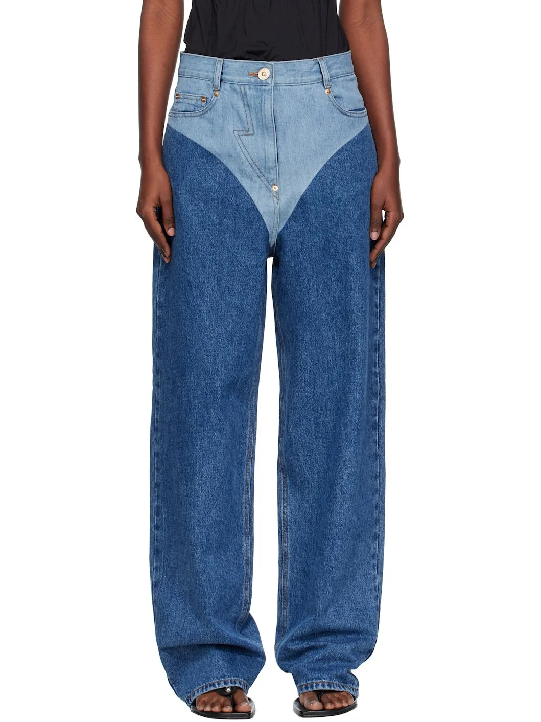 Non-stretch denim jeans. · Wide-leg · Fading throughout · Belt loops · Five-pocket styling · Zip fly · Logo patch at back waistband · Contrast stitching in tan Supplier color: Blue 100% cotton. Made in South Korea 252252F069023