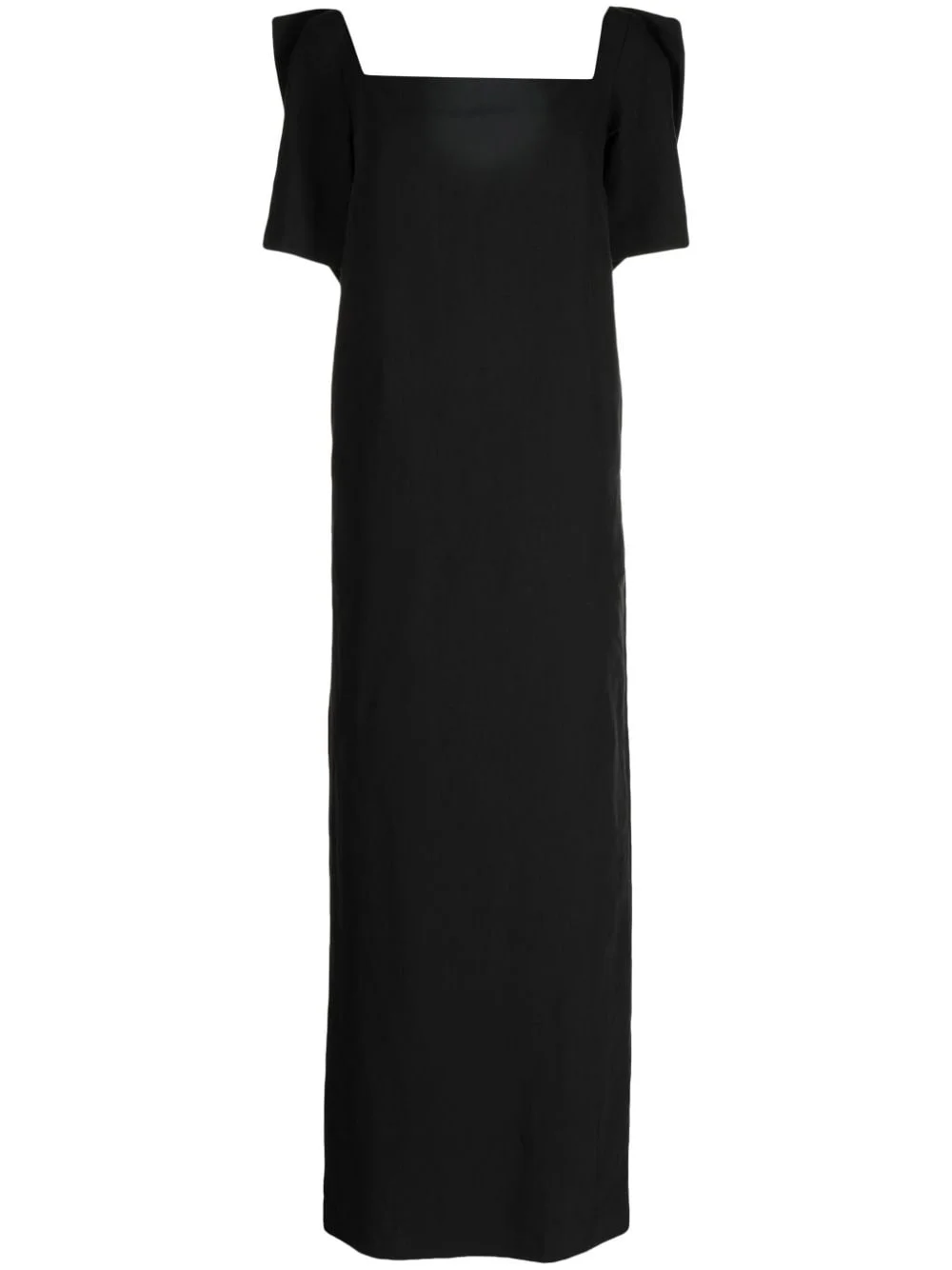 bow-detailing square-neck dress Highlights - Black - Linen blend - Bow detailing - Square neck - Short sleeves - Rear slit - Straight hem - Mid-length Imported Composition Outer: Linen/Flax 51%, Cotton 49% Lining: Cupro 100% SIZE & FIT Measurement SLEEVE LENGTH 10.62 in(27 cm) LENGTH 58.26 in(148 cm) WAIST 35.43 in(90 cm) BUST 33.85 in(86 cm) Washing instructions Dry Clean Only