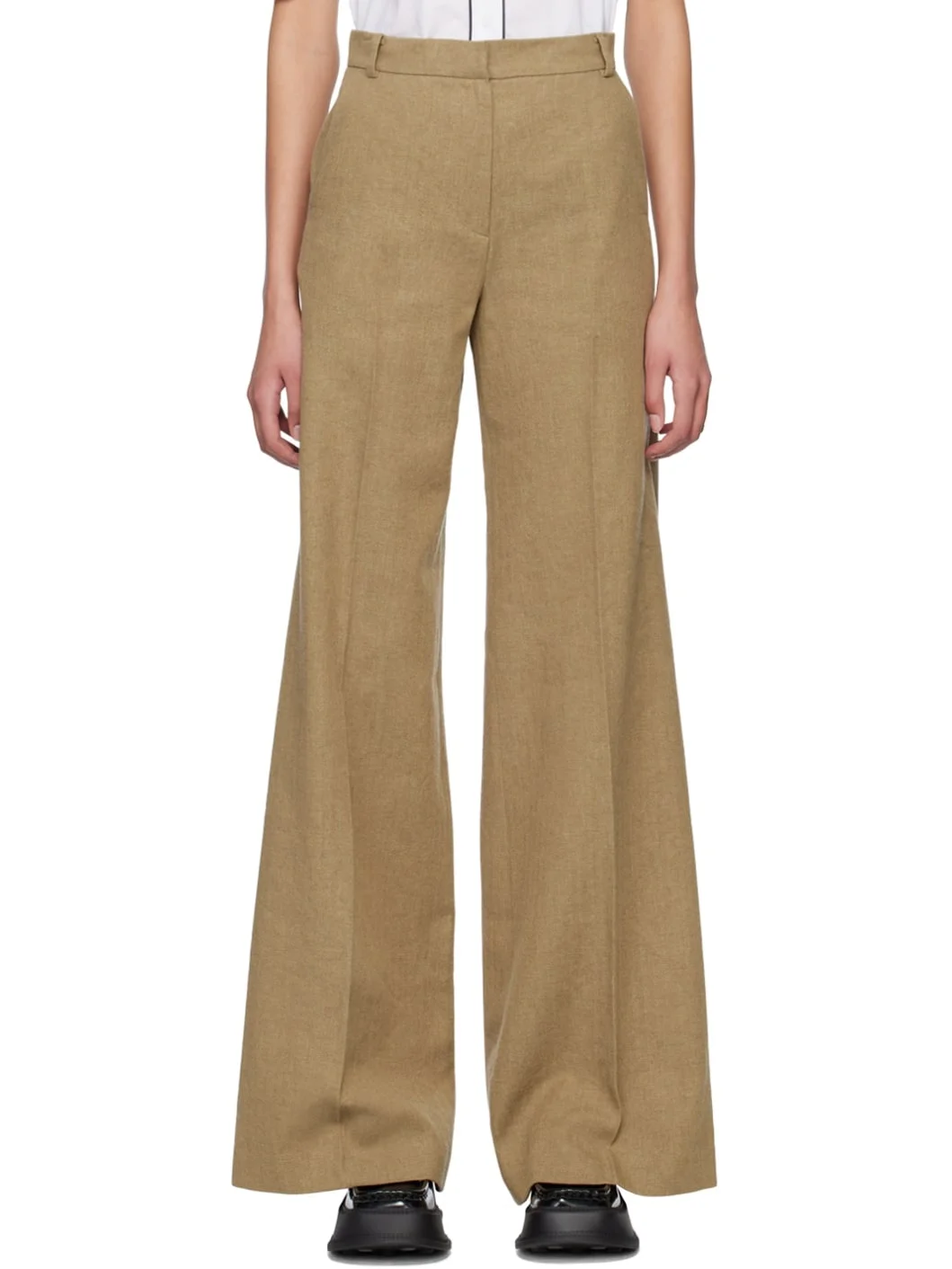 Linen and wool-blend twill trousers. Herringbone pattern throughout. · Belt loops · Four-pocket styling · Zip-fly · Central creases at front and back Supplier color: Brown 54% linen, 37% wool, 9% nylon. Made in South Korea 231252F087019