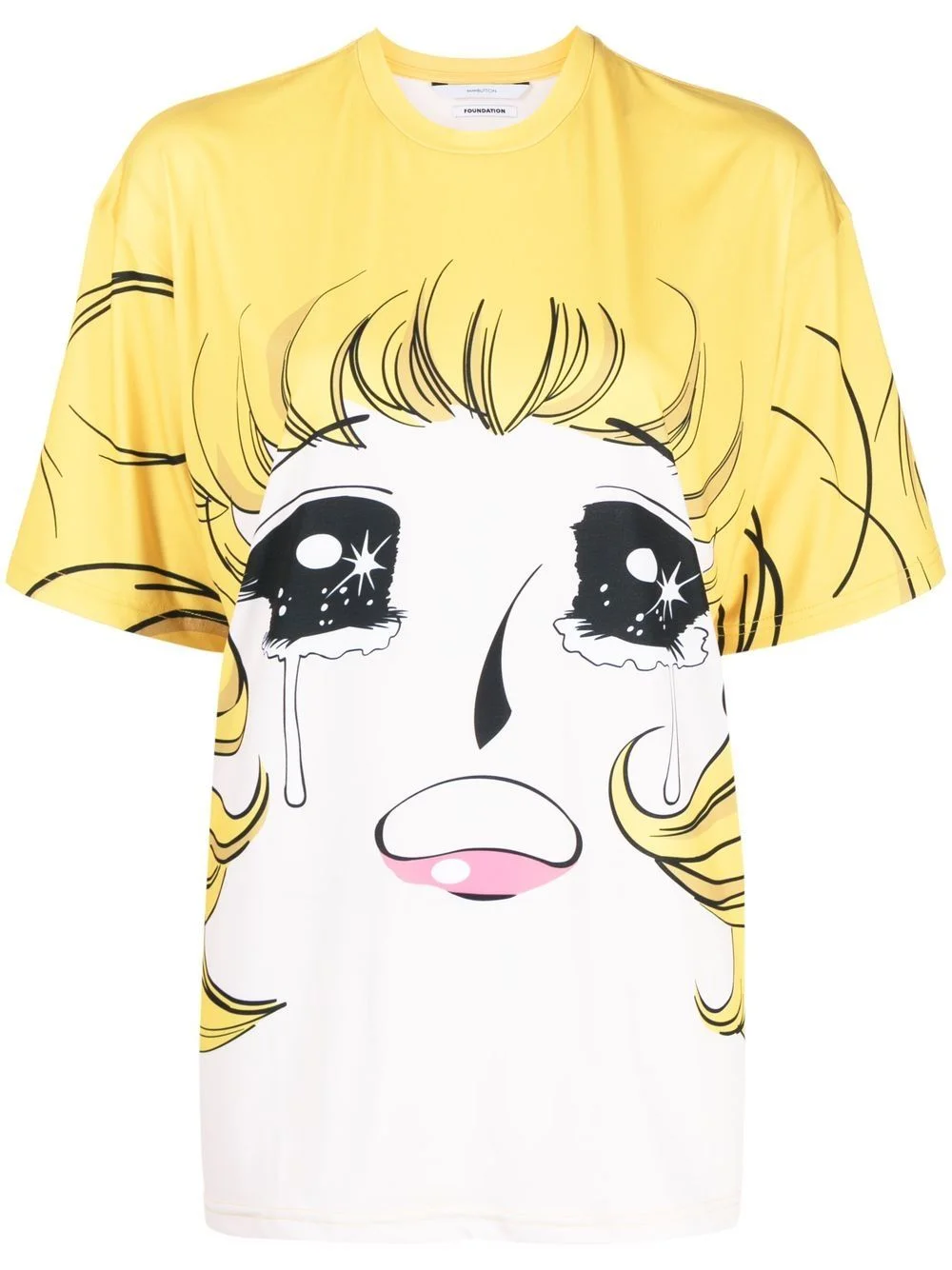 graphic-print T-shirt dress banana yellow/multicolour all-over graphic print round neck short sleeves straight hem Imported Composition Body: Polyester 95%, Spandex/Elastane 5% SIZE & FIT Model measurements Height 5 ft 9 in(1.76 m) Bust/Chest 31.1 in(79 cm) Hips 35.03 in(89 cm) Waist 24.4 in(62 cm) FittingInformation This piece fits true to size. We recommend you get your regular size Cut for an oversized fit Made with a mid-weight stretch fabric Washing instructions Dry Clean Only