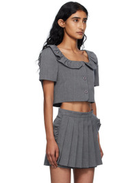 Wool canvas top. · Ruffled trim at scoop neck · Button closure · Darts at chest · Cropped hem · Full satin lining Supplier color: Gr Body: 100% wool. Lining: 100% cupro. Made in South Korea 252252F107002