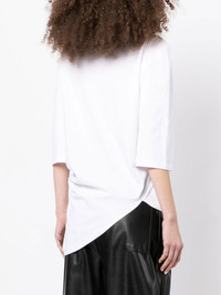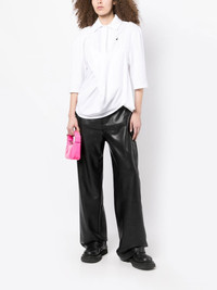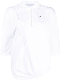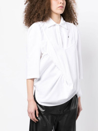 layered half-sleeve shirt white cotton layered design embroidered logo at the chest classic collar front button fastening half-length sleeves asymmetric hem Imported Composition Body: Cotton 100% SIZE & FIT Model measurements Height 5 ft 10 in(1.78 m) Bust/Chest 33.46 in(85 cm) Hips 35.43 in(90 cm) Waist 24.4 in(62 cm) FittingInformation This piece fits true to size. We recommend you get your regular size Cut for a loose fit Made with a mid-weight fabric Washing instructions Dry Clean Only