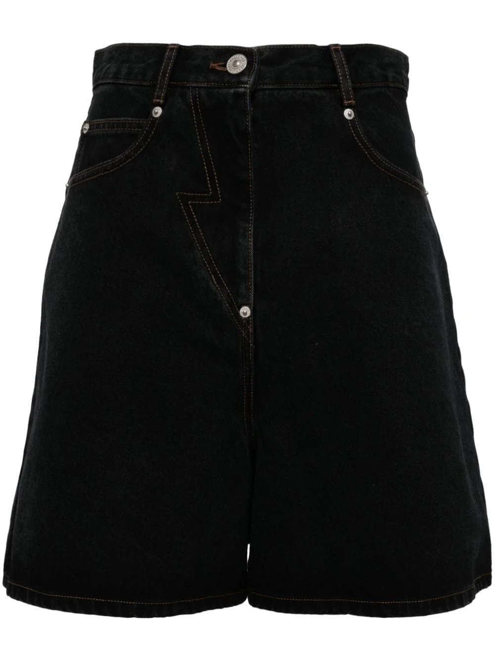 logo patch denim shorts Highlights - Dark blue - Cotton - Denim - Front button and zip fastening - Belt loops - Classic five pockets - Logo patch to the rear - Contrast stitching - High-waisted - Thigh-high Imported Composition Cotton 100%
