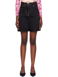 Non-stretch denim midi skort. Fading throughout. · Belt loops · Five-pocket styling · Zip-fly · Logo patch at back waistband · Logo-engraved silver-tone hardware · Contrast stitching in tan Supplier color: Dark blue 100% cotton. Made in South Korea 242252F088010