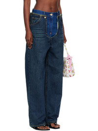 Non-stretch denim jeans. · Fading and whiskering throughout · Belt loops and frayed edge at layered waistband · Five-pocket styling · Zip fly · Graphic patch at back waistband · Contrast stitching in tan Supplier color: D bl Body 1: 100% cotton. Body 2: 100% cotton. Made in South Korea 252252F069025