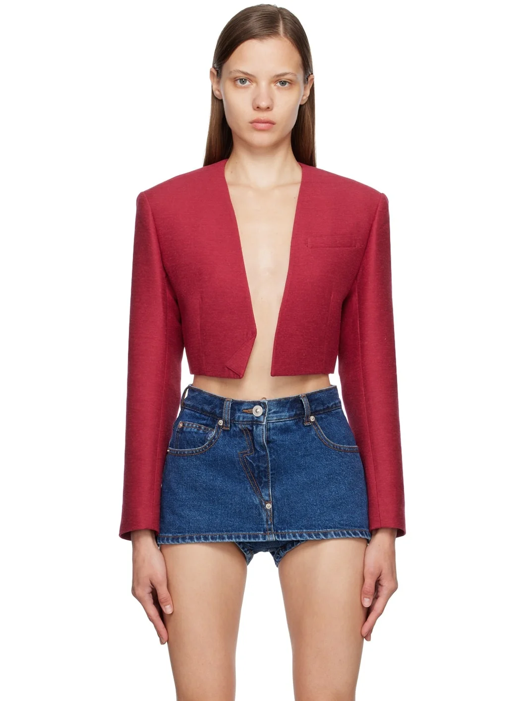 Silk and wool-blend twill blazer. · V-neck · Open front · Welt pocket at chest · Darts at front · Padded shoulders · Partial satin lining Supplier color: Pink Body: 70% silk, 30% wool. Lining: 100% cupro. Made in South Korea 222252F057008