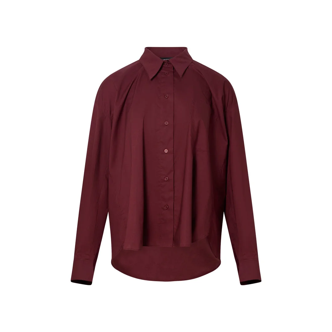 600067358BUR00S / PB2520208W/00/WI - Classic point collar - Long sleeves with button cuffs - Full button-front closure - Curved hem design - Cotton poplin construction - Contemporary fit The pushBUTTON Blouse delivers contemporary Korean fashion with architectural tailoring and modern sophistication. Crafted from premium cotton poplin in rich burgundy, featuring the brand's signature structured silhouette and clean construction. The contemporary cut and bold color create a striking statement piece for modern wardrobes.