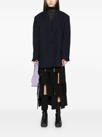 raw edge jacket Highlights - Navy blue - Cotton-wool blend - Raw edge - Stripe detailing - Patchwork detailing - Jetted chest pocket - Two front flap pockets - Rear slit - Button fastening - Full lining Imported Composition Outer: Cotton 53%, Wool 47% Lining: Rayon 100% SIZE & FIT Model measurements Height 5 ft 10 in(1.77 m) Bust/Chest 27.95 in(71 cm) Hips 34.64 in(88 cm) Waist 22.83 in(58 cm) FittingInformation Designed for an oversized fit, offering additional room throughout The internal shoulder pads offer a structured shape Made from a midweight non-stretch fabric