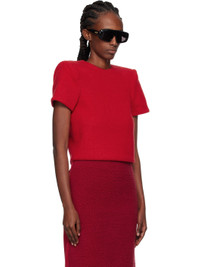 Red Curvy Shoulder Knitted T-shirt