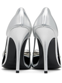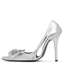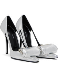 Grained leather heels in metallic silver tone. · Pointed toe · Kiss-lock coin pouch at vamp · Cutout at sides · Logo patch at padded leather footbed · Covered stiletto heel with rubber injection · Polished leather sole · Heel: H4.25" Supplier color: Silver Leather. Made in South Korea 251252F122003