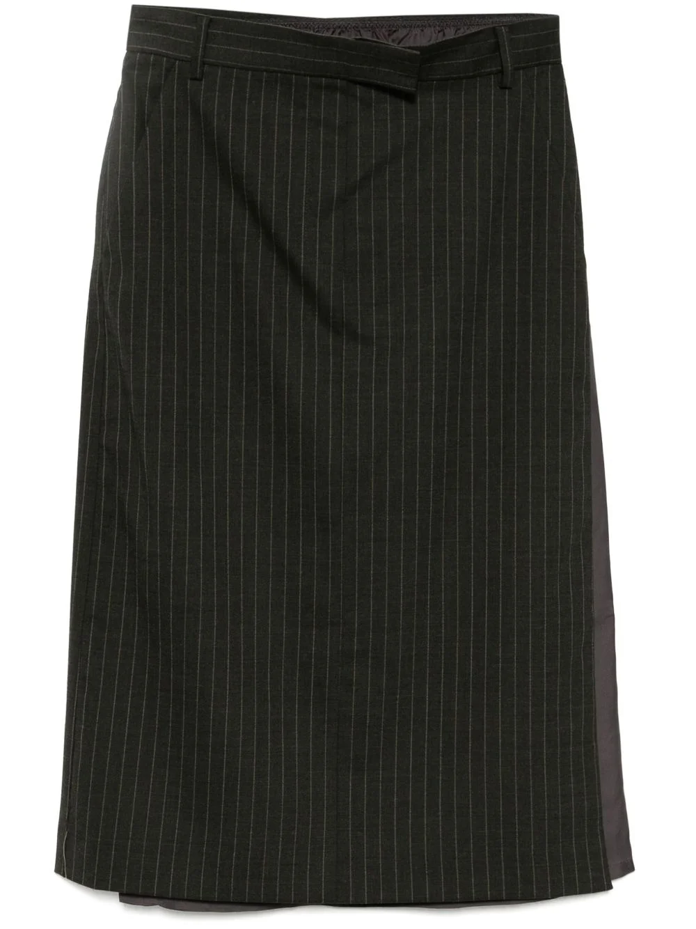 stripe H line skirt Highlights - Khaki - Wrap design - Front button fastening - Front slash pocket - Rear flap pocket Imported Composition Wool 97%, Spandex/Elastane 3%