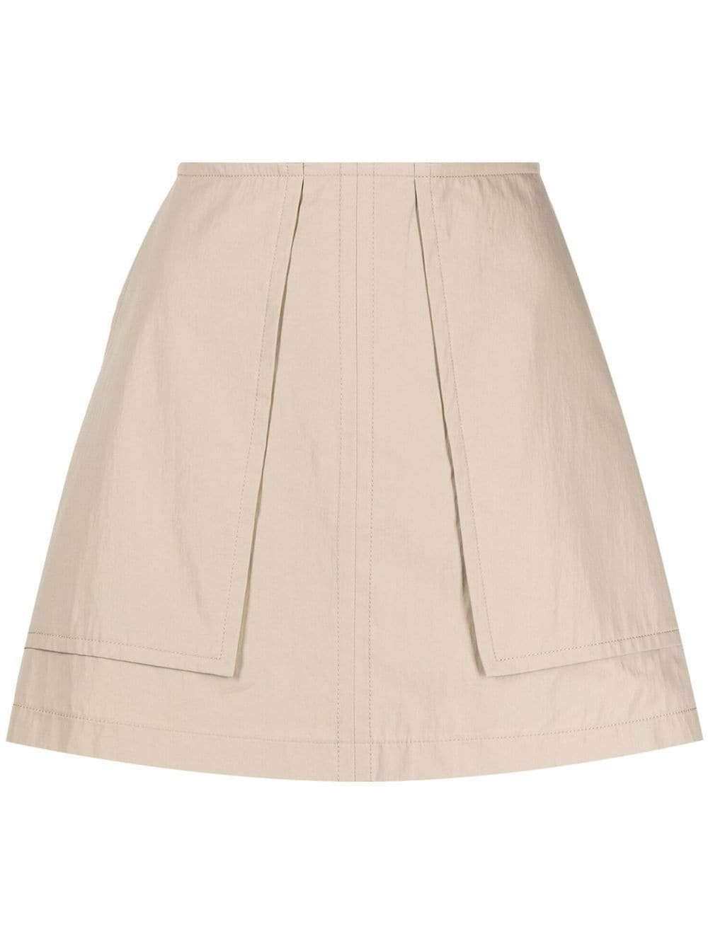 two-pocket A-Line skirt two-pocket A-Line skirt from Pushbutton featuring beige, cotton blend, A-line, rear zip fastening, two front patch pockets and thigh-length. Imported Composition Body: Cotton 69%, Nylon 31% SIZE & FIT Model measurements Height 5 ft 10 in(1.78 m) Bust/Chest 33.5 in(85 cm) Hips 35.4 in(90 cm) Waist 24.4 in(62 cm) FittingInformation This piece fits true to size. We recommend you get your regular size Designed to be fitted at the waist, loose over the leg Made with a mid-weight non-stretch fabric