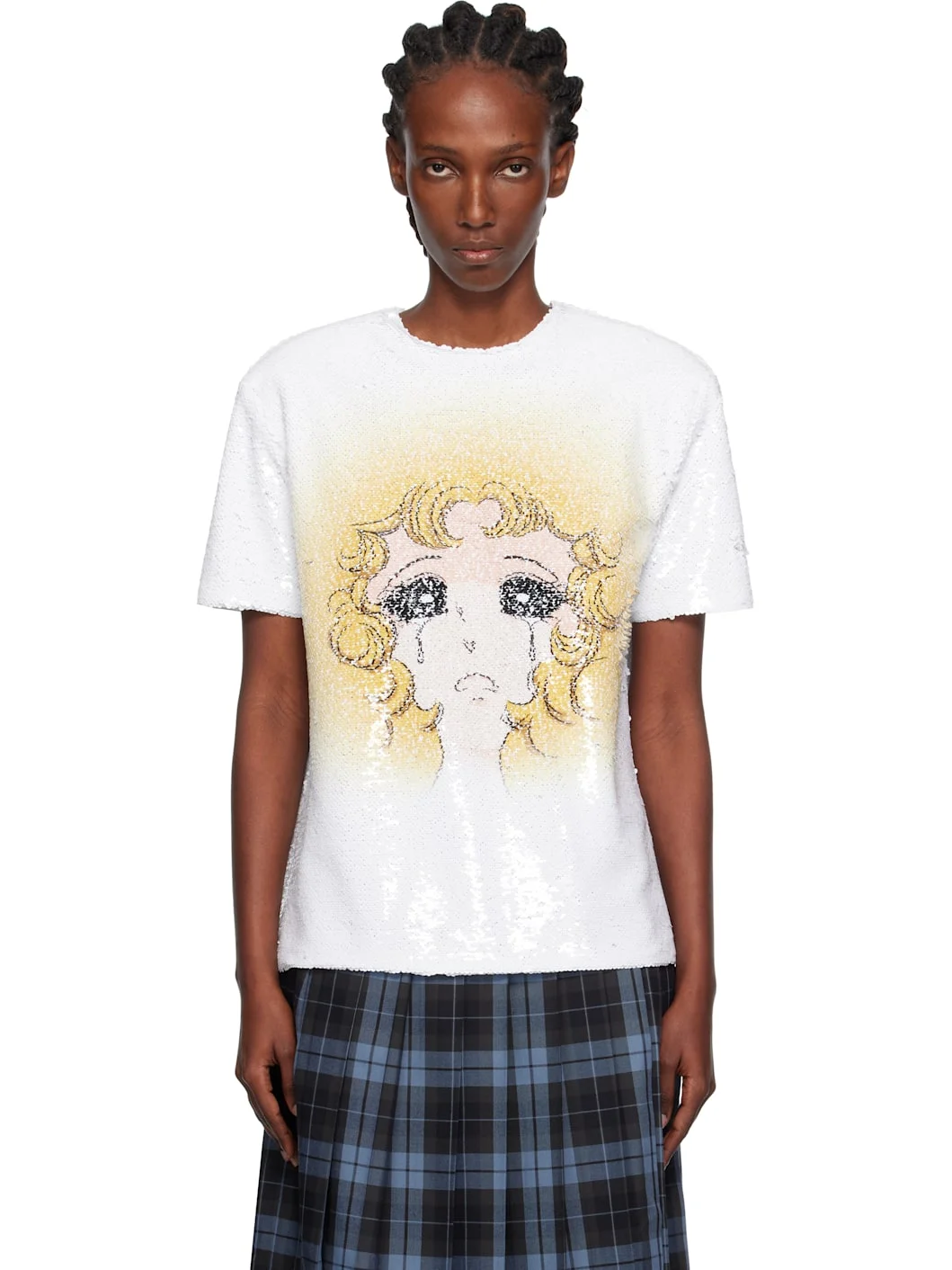 Sequinned mesh T-shirt. · Crewneck · Graphic printed at front · Zip closure at back · Full organza lining Supplier color: Wh Body: 100% polyester. Lining: 100% polyester. Made in South Korea 252252F110028