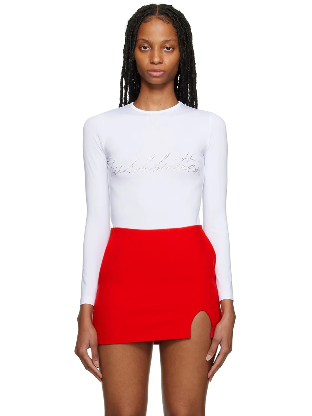 Stretch polyester jersey T-shirt. · Crewneck · Crystal-cut logo at front Supplier color: White 92% polyester, 8% polyurethane. Made in South Korea 231252F110082