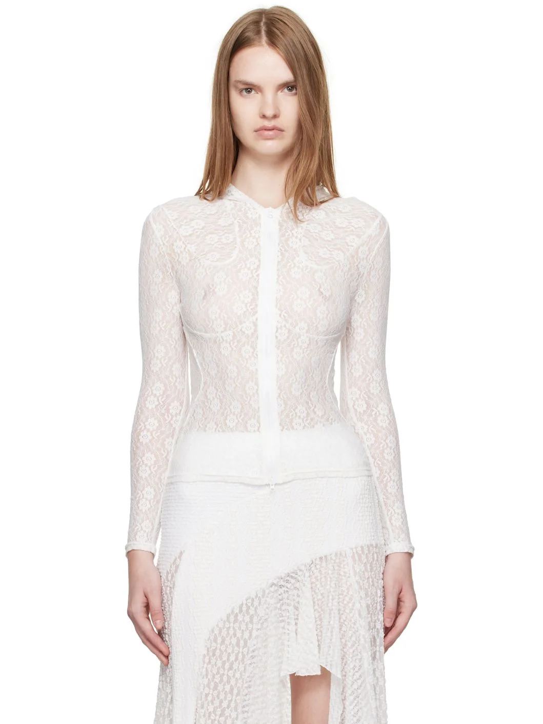 White Lace Zip-Up Hoodie