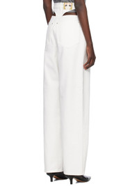 Wide-leg non-stretch denim jeans. · Belt loops · Five-pocket styling · Zip fly · Logo patch at back waistband · Cutouts at back yoke · Logo-engraved silver-tone hardware Supplier color: White 100% cotton. Made in South Korea 251252F069025