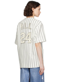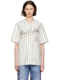 Cotton-blend jersey shirt. Sequinned stripes throughout. · Crewneck · Button closure · Logo applique at chest and back · Patch pockets · Full poplin lining Supplier color: White Body 1: 50% cotton, 50% polyester. Body 2: 50% cotton, 50% polyester. Lining: 57% cotton, 43% cupro. Made in South Korea 241252F109026