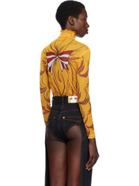 Sheer polyester mesh turtleneck. · Graphic printed throughout · Lettuce edge at collar Supplier color: Yellow 100% polyester. Made in South Korea 251252F098025