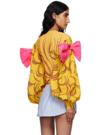 Jersey T-shirt. · Graphic printed throughout · Crewneck · Bow accent at shoulders · Gathering at poplin balloon sleeves · Adjustable buttoned barrel cuffs Supplier color: Yellow Body 1: 100% polyester. Body 2: 100% cotton. Trim: 100% nylon. Made in South Korea 252252F110021