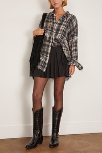 The R13 Shredded Seam Drop Neck Shirt features the unique details you love from this designer. This button down shirt has an oversized fit with distressing. Wear yours with jeans and sneakers. - Button down shirt - Oversized fit - Drop shoulders - Distressing