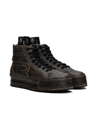 High-top cracked leather sneakers in black. Fading throughout. · Perforations and snake-embossed trim at toe · Lace-up closure · Padded tongue · Logo applique at sides · Pull-loops at quilted heel collar · Zip closure at heel · Jersey lining · Leather-covered platform midsole · Treaded rubber sole · Platform: H2" Supplier color: Distressed black Upper: leather. Sole: rubber. Made in Italy 242021F127006