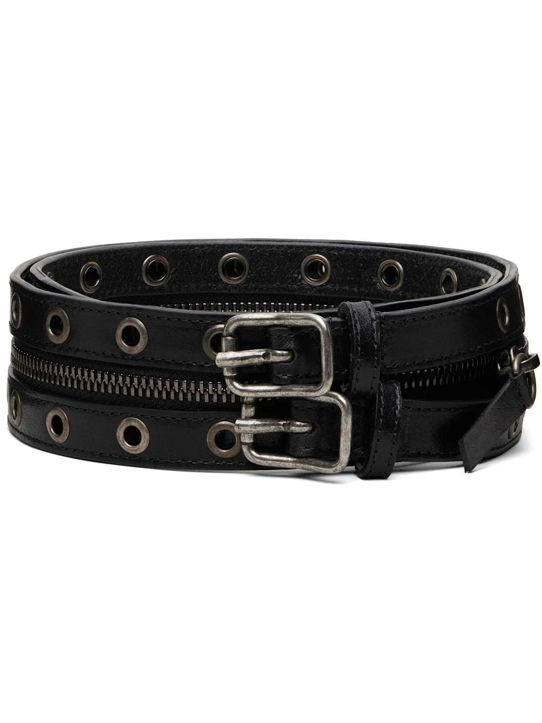 Buffed leather belt. · Metal eyelets throughout · Zip fastening at length · Pin-buckle fastenings · W1.5" Supplier color: Black Leather. Made in Italy 252021F001000