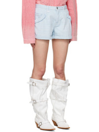 Baggy-fit stretch denim shorts. Fading and subtle distressing throughout. · Belt loops · Five-pocket styling · Button fly · Rolled cuffs · Leather logo patch at back waistband · Logo-engraved antiqued silver-tone hardware Supplier color: Faded blue stretch Body: 99% cotton, 1% elastane. Lining: 65% polyester, 35% cotton. Made in Italy 251021F088018