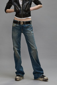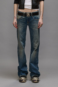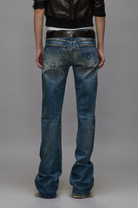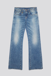 The Boy Flare is a fitted low rise jean at the top that flares out at the leg for a dynamic silhouette. Built with 11.5 oz. Italian indigo stretch denim treated with heavy wear patterns and a warm tint. - MADE IN ITALY - Color: Kelly Stretch - 97% Cotton, 3% Polyurethane - R13WD090-D081A