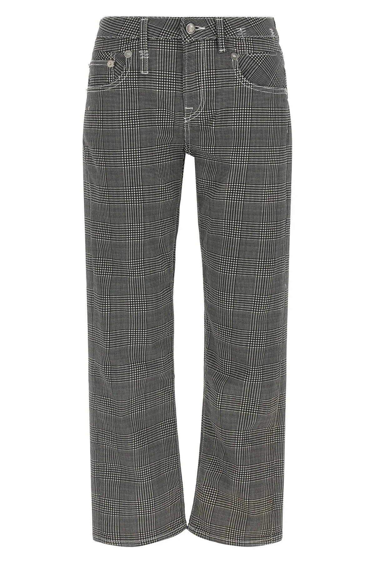 cod. R13W0093D139APRINTEDGLENPLAID Prince of Wales pattern stretch cotton pants Boy Straight crop style, low waist, straight leg, front zip and button closure, five pockets, back logo tag. Color: White/Black Size & Fit: Slim fit Composition: 98% cotton, 2% elastane Made in: Italy