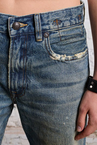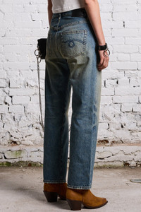 Classic straight leg Boyfriend jean built from rigid Japanese indigo denim and treated with a vintage indigo wash.This style runs slightly large. If in between sizes, we recommend sizing down. - Color: Clinton Blue - 100% Cotton - R13W5083-D173A - Imported