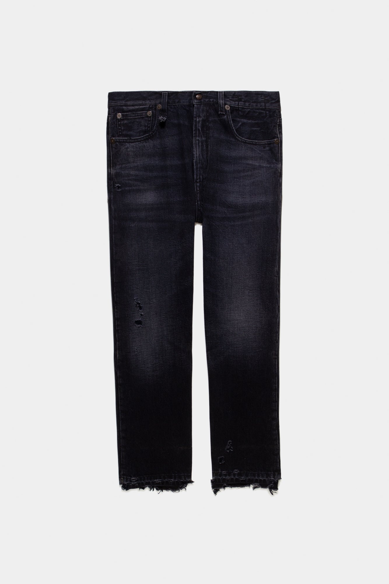 This style runs slightly large. If in between sizes, we recommend sizing down. - Color: Jake Black - Mid rise straight jean; ankle length - Relaxed fit with distressed finishing - Classic five pocket styling - Model is 5’11” and wearing size 25 - Bust 34”; waist 24”; hips 35” - Italian Fabric - 100% Cotton - Machine wash cold, Do not tumble dry - Made in Italy - R13W5083-394A
