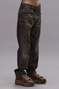 Classic straight leg boyfriend jean built mid-weight rigid ecru Italian denim treated with an all-over dark grey pigment spray and manual grinding treatment to achieve a naturally worn look.This style runs slightly large. If in between sizes, we recommend sizing down. - MADE IN ITALY - Color: Mud Grey - 100% Cotton - R13W5083-D268A