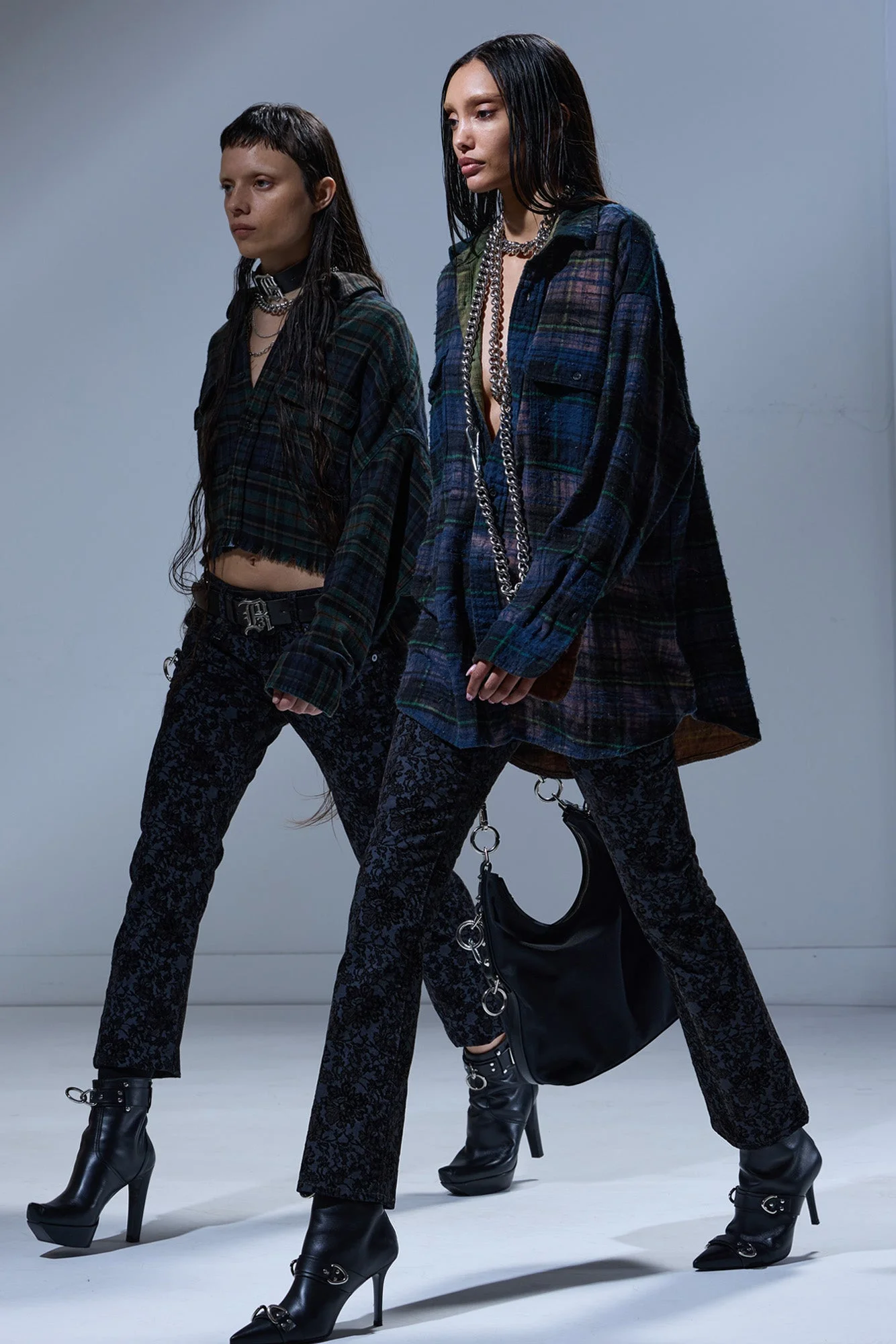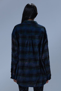 Relaxed fit flannel shirt built with Japanese plaid. DETAILS Color: Navy Blue Plaid 100% Cotton R13WR415-R606B Imported