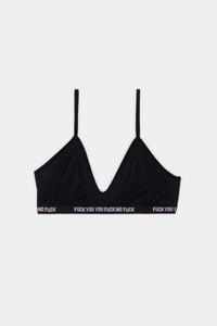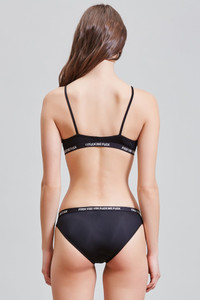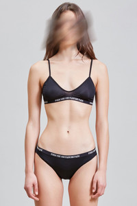 This is a USA made classic bralette with matte micro nylon. Designed with triangle cups and a black and white FYYFF waistband. - Color: Black - Model is 5’10” and wearing size M - Bust 34”; waist 24”; hips 35” - 90% PA 10% EA - Machine wash cold, Do not tumble dry - Made in Los Angeles - R13WK035-K001A