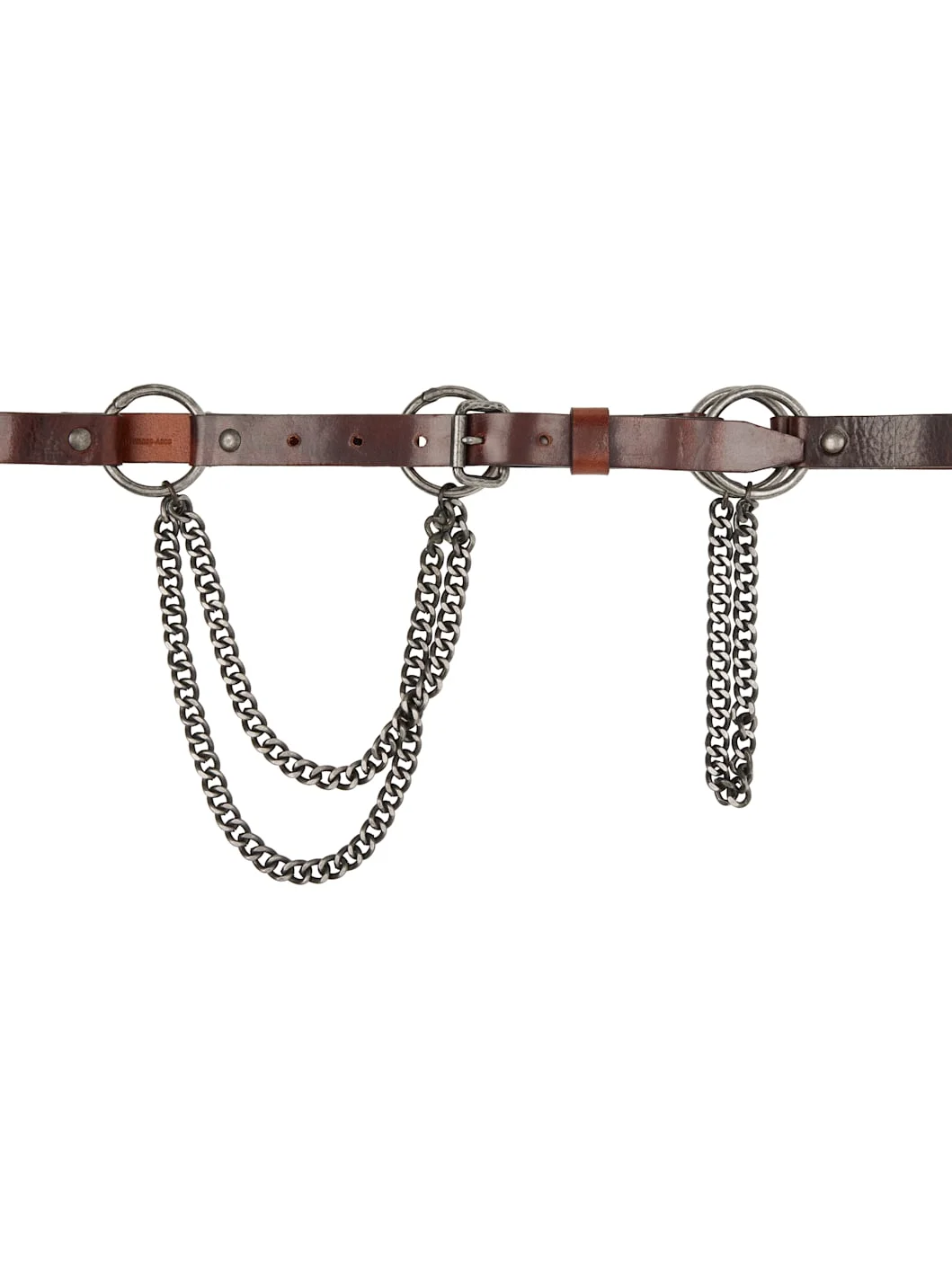 Buffed leather belt. · Fading throughout · O-rings and curb chains at length · Pin-buckle fastening · W1.75" Supplier color: Brown Leather. Made in Italy 252021F001002