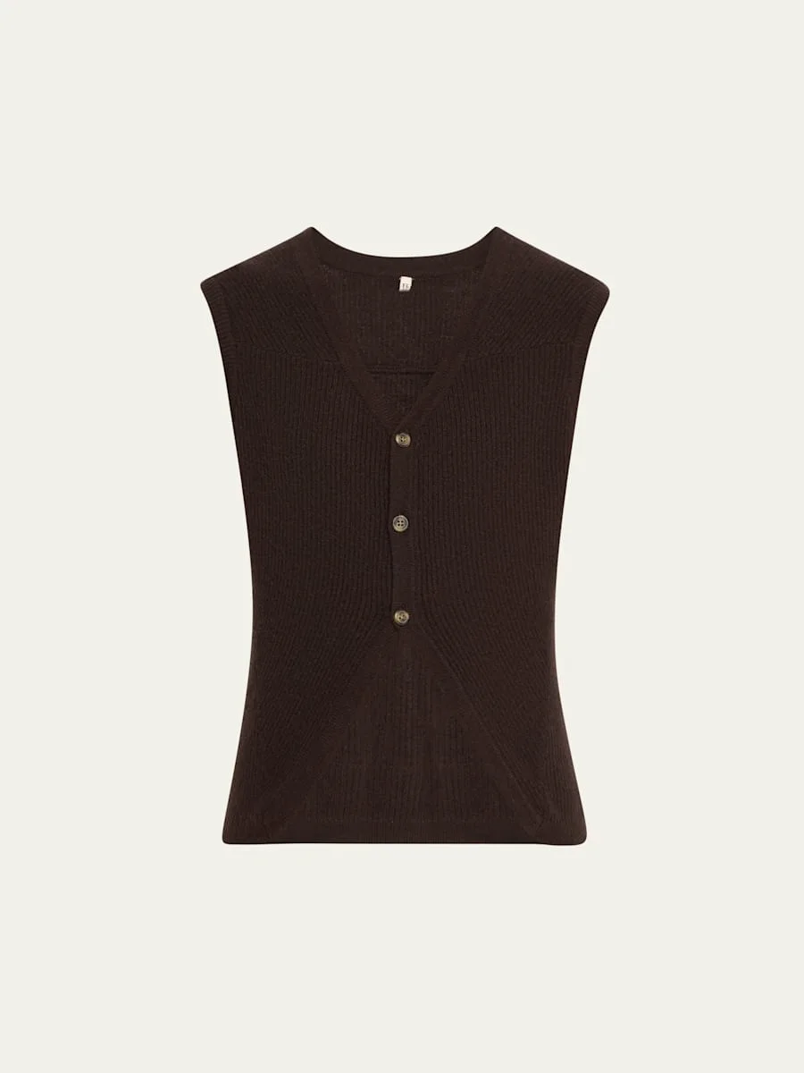 R13 luxurious cashmere vest elevated with a cut-away hem for an updated touch V neckline Sleeveless Relaxed fit Button-front Cashmere Dry clean Imported Online Inquiries: BGS21_T6U25| Store Inquiries: #5035328