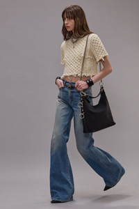 R13's newest fit - the Charlotte. A high rise jean with a subtle flare. Built with 13 oz. rigid denim with a medium indigo wash and mild wear pattern. DETAILS Made in Italy Color: Merrin Blue 100% Cotton R13WD188-D343A