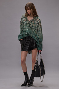 Relaxed fit drop neck workshirt built from printed Italian crinkle cotton gauze. DETAILS Made in Italy Color: Dipped Black Turquoise Plaid 100% Cotton R13WR015-R556B